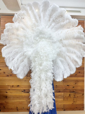 エンジェルウィングは、パーティや記念撮影、プロモーションなどでご使用できるように制作されております。通常の羽根の組み上げとは異なり、ベースとなる素材や高級オーストリッチを厳選し、創造的な翼の形状に仕上げております。サンバ衣装としてもご利用可能です。